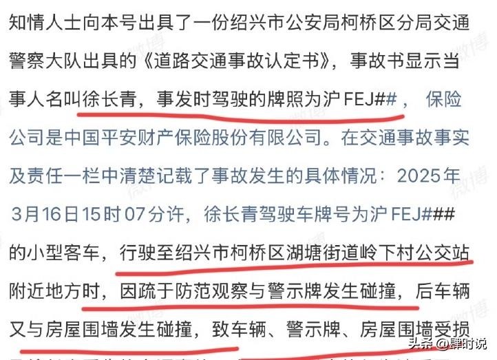 面对交警现场询问,徐长青依指示作出不实陈述,谎称自己系事发时驾驶员。绍兴柯桥交警大队依据该口供笔录,出具了《道路交通事故认定书》。