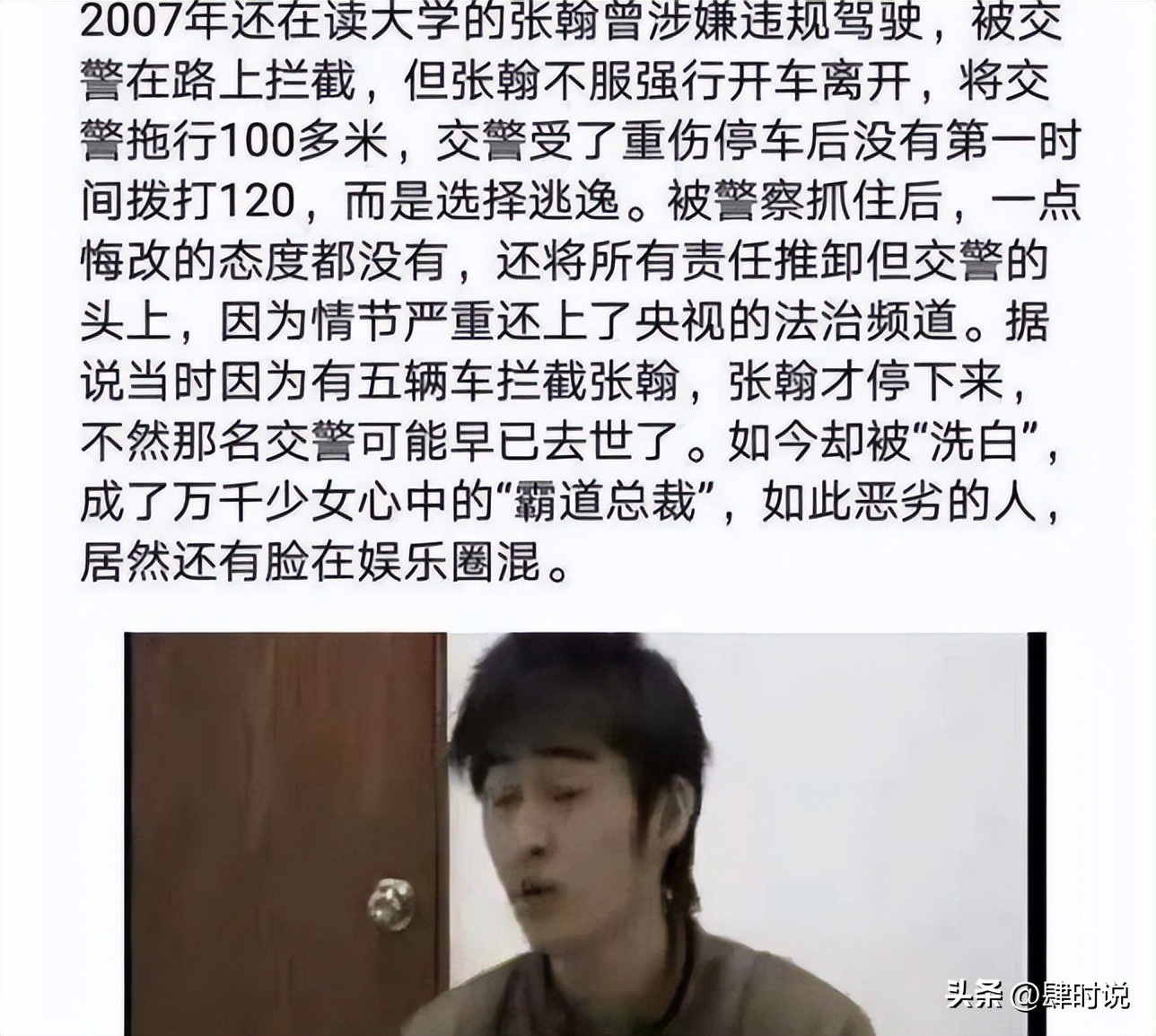 明星交通违规、逃避责任的案例,在业内早有先例,张翰2007年的执法冲突事件便是典型样本。