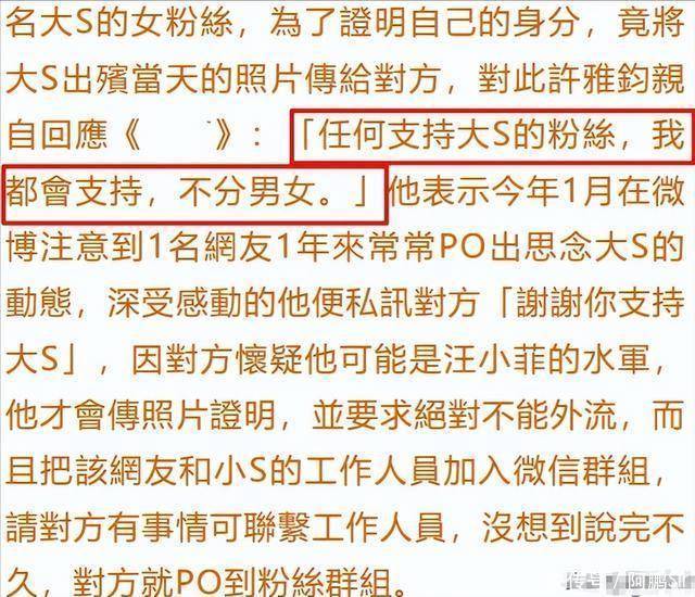 为了证明自己的身份,许雅钧做出了一个令人发指的举动:他将大S出殡现场的私密照片,直接发给了女粉丝。