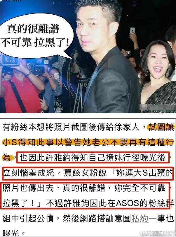 这一次,不是小S的“疯癫”言论,也不是S家的鸡毛蒜皮,而是她的老公——许雅钧干了件龌龊事。