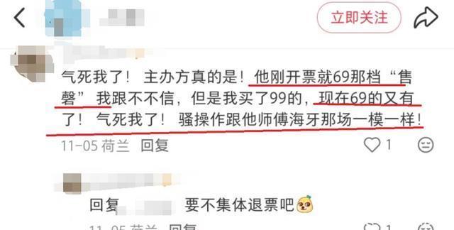 不止是票价高这一个槽点,还有主办方的其他操作,网上有一些想要看相声的网友就现身说法了。 网友表示,自己起初搜索余票的时候,发现低档的票已经没有了,高档的票也卖出了一部分,他当时就想着观望一下。