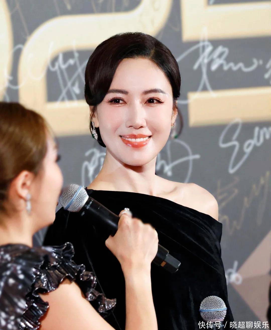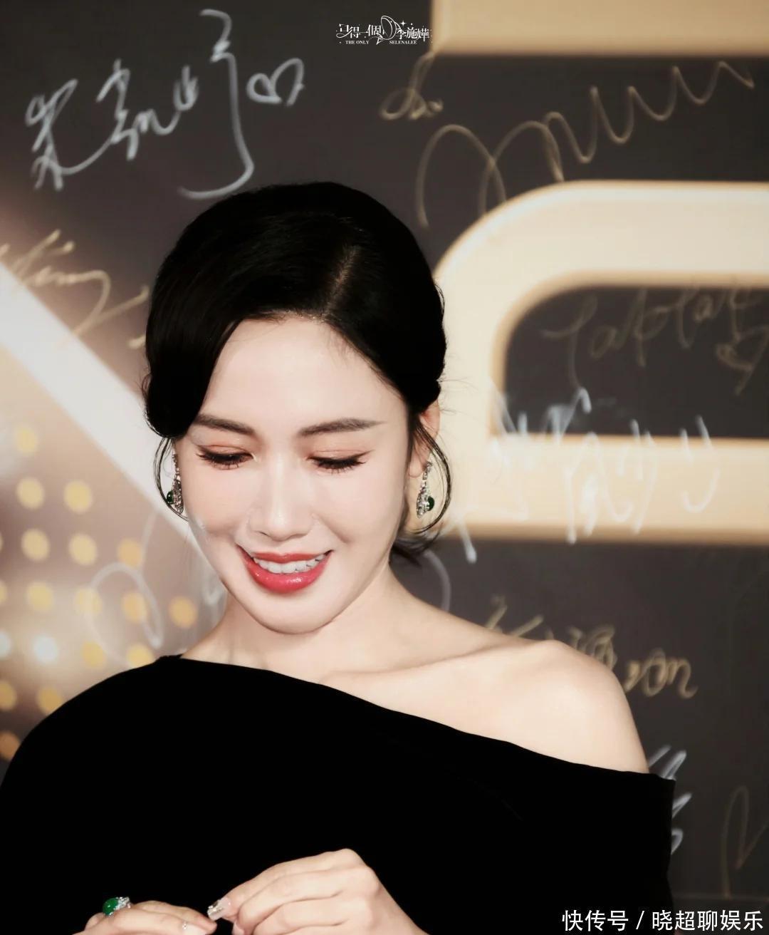 李施嬅那条黑色丝绒斜肩裙真是绝了,质地一照光就有暗哑的光泽,贴着身子往下走,该凸的凹,该收的收,曲线一气呵成。头发往后一拢,额头露出来,脸小得像巴掌。耳钉就一对小圆点,别的啥都没戴,反而显得高级。全程走路不飘不晃,稳得像定海神针。