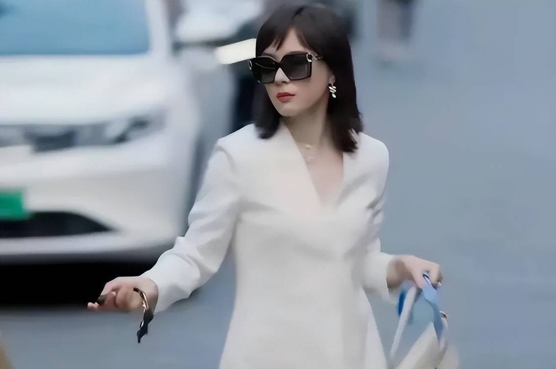 齐肩短发被风吹得拉回来回飘动,她的妆容配上这一身穿搭显得非常减龄。